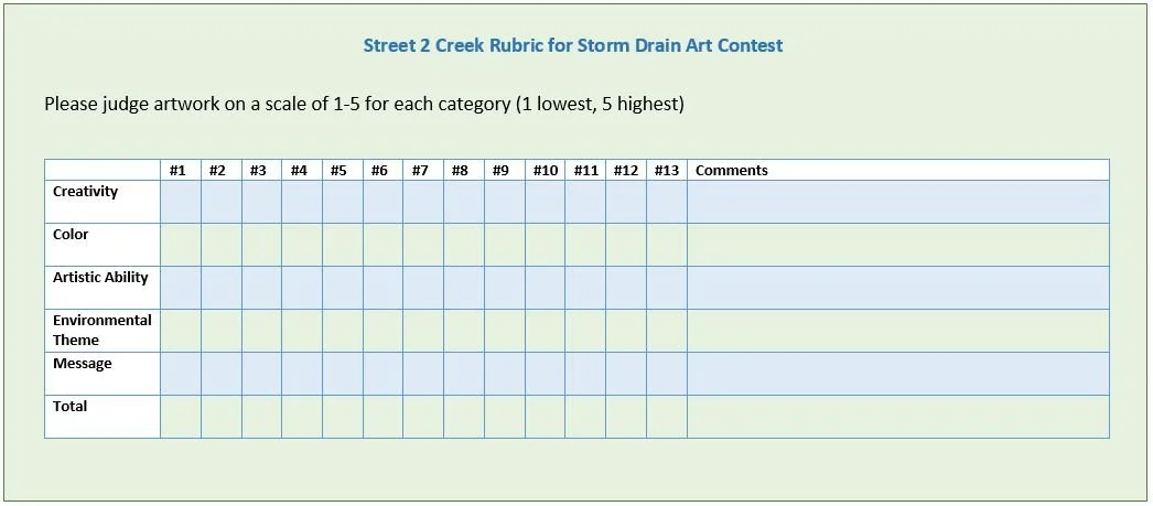 Art must have a clear environmental message related to storm drains, runoff, pollution, and/or water quality.